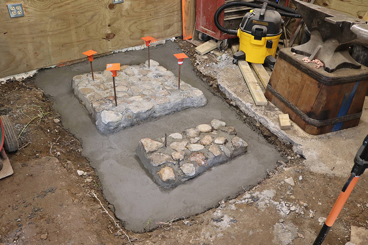 work and to soon resume construction of the stone forge. New brick floor is
